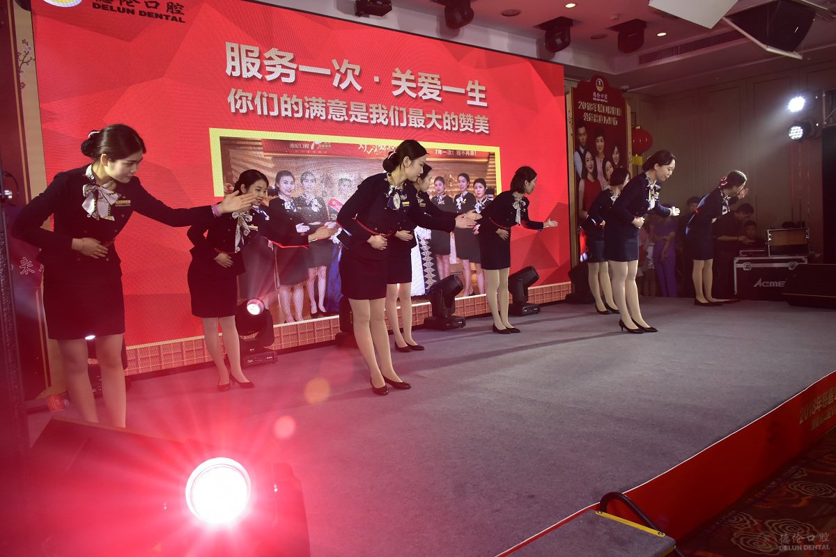 伴着电视台主播的歌声,德伦口腔年终感恩答谢盛宴正式开始,德伦口腔总院院长徐教授进行了郑重的致辞。徐院长表示,2017是德伦口腔连锁起航的一年,不仅在广州开设了燕塘分院,车陂分院,还在顺德开设了首家分院,德伦口腔6家分院成立,在珠三角的连锁步伐进一步扩大。此外,2017年也是德伦医疗技术飞跃发展的一年,不仅连续举办大型种植、正畸学术峰会,邀请国内外齿科巨匠深入探讨解析口腔种植、正畸疑难病例,规范临床操作、降低风险减小误差,还对数字化正畸中心进行了扩业升级,为羊城市民提供了更便利、更优质的口腔治疗服务。