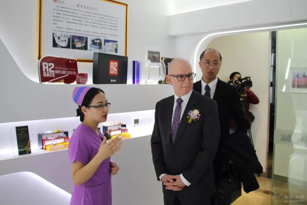 随后,德伦口腔护理部吕金英副主任等人的带领下,JOHN教授参观了德伦口腔数字化设计中心、消毒中心、种植科各大诊室,深入了解德伦数字化种植技术、探望前来种牙的市民。