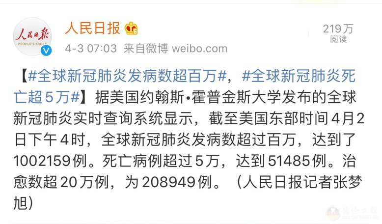 2020年开始,一场疯狂的病毒席卷了全球。截止4月3日,全球新冠肺炎确诊病例已经超过100万。