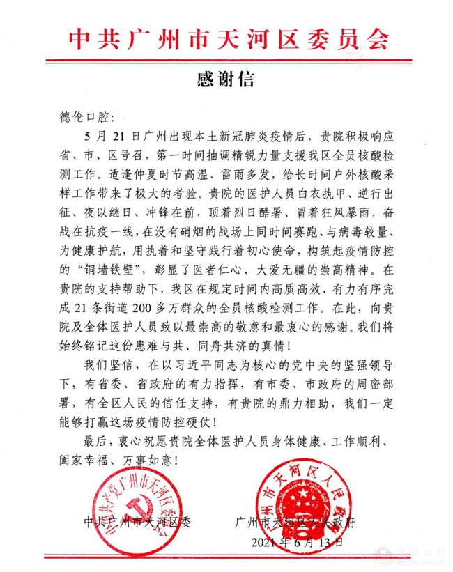 中共天河区委员会致谢德伦口腔