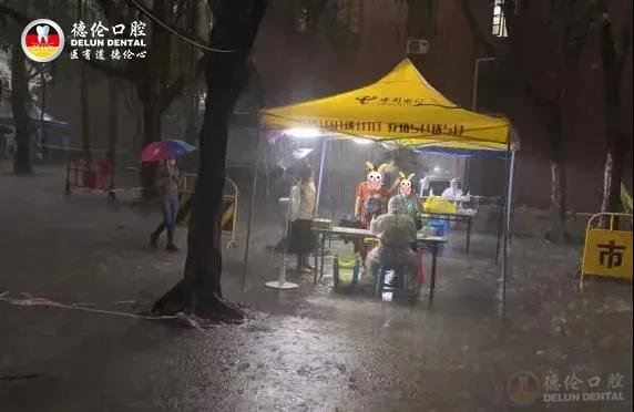 狂风暴雨来袭,恶劣天气下,德伦口腔医护团队始终坚守岗位,有序开展核酸采样工作